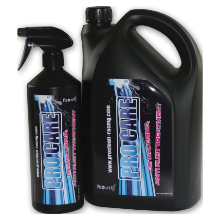 ProCare est un mélange subtiles de lubrifiants et d'huiles à faible pénétration, destiné à déplacer l'eau des endroits cachés où la rouille et la corrosion peuvent se produire entre les lavages et après de mauvais temps.