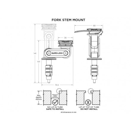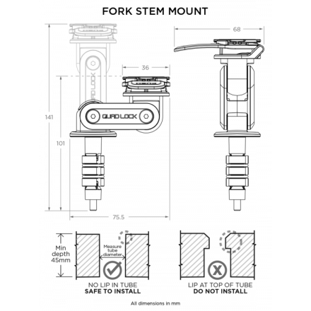 Support potence fourche moto Quad Lock