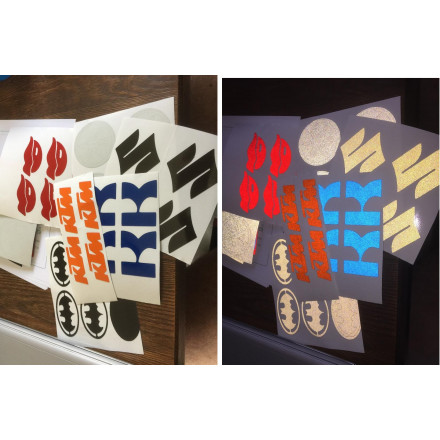 Autocollants rétroréfléchissants livré sur une feuille de 10cm x 10cm comprenant 4 autocollant.
